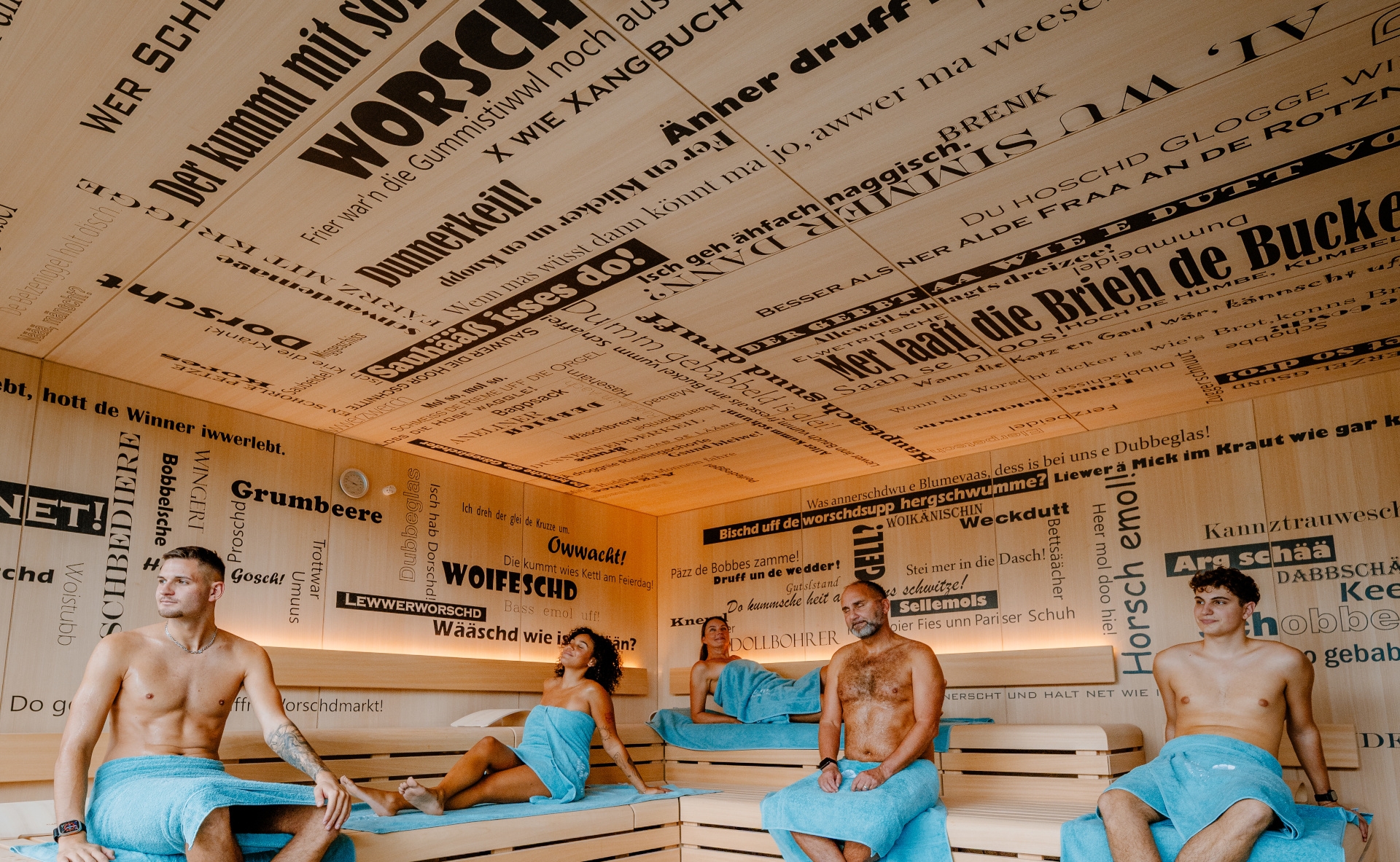 Die Saunalandschaft bietet auf drei Stockwerken eine Waldsauna im Saunagarten, eine Panoramasauna mit Blick über Kurpark und Pfälzerwald und die Babbelsauna, in der Quatschen ausdrücklich erwünscht ist.